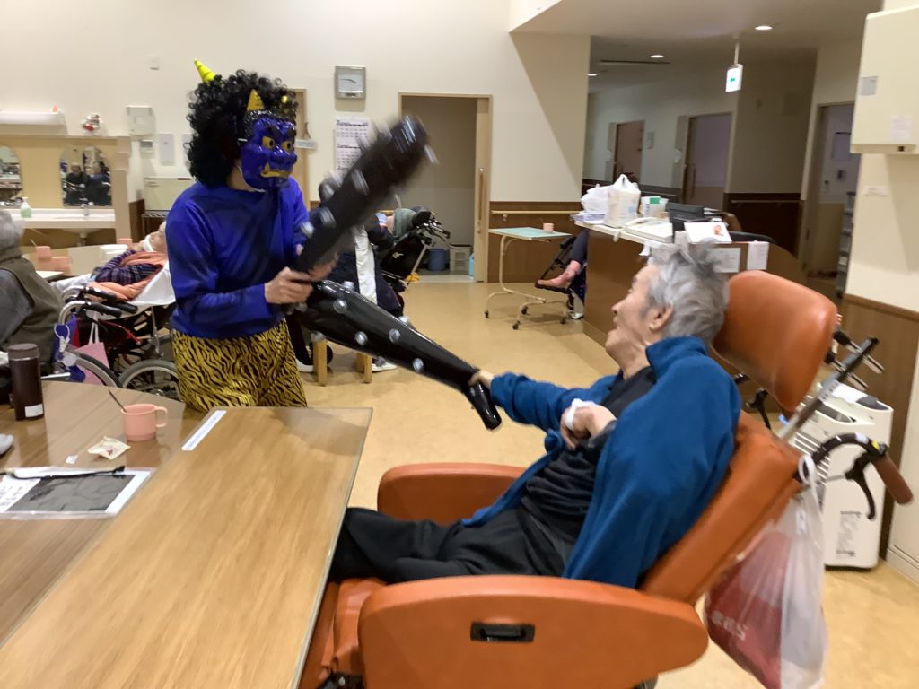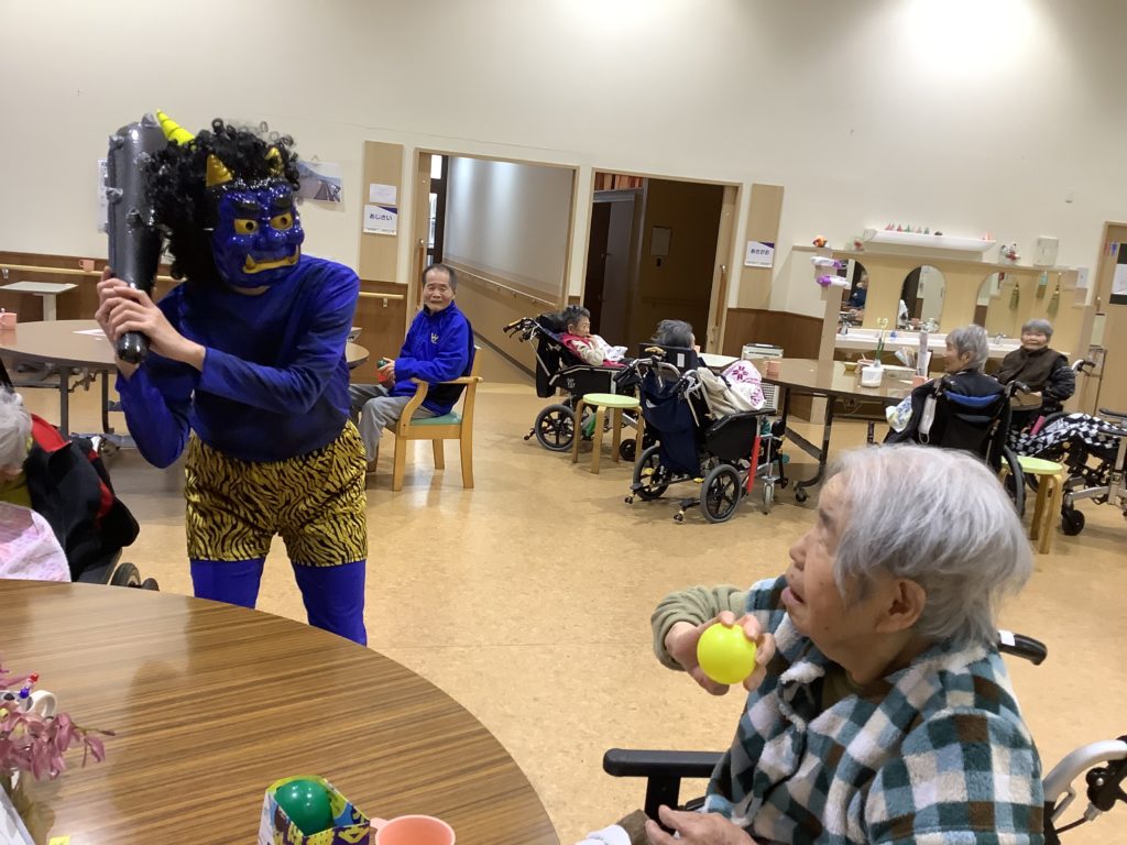そんな中、今年も湯之里園では、「鬼は外、福は内」と元気な声で鬼退治を行いました。