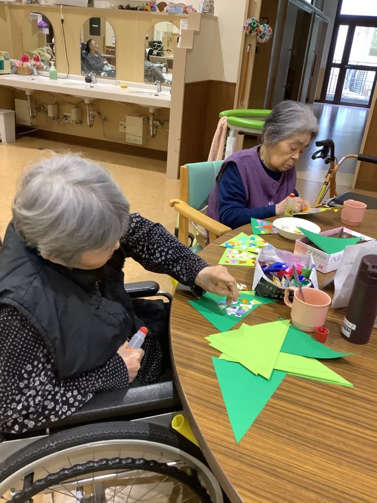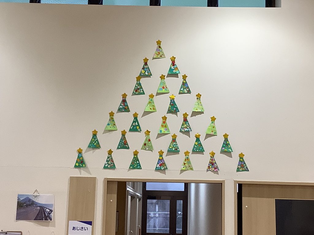クリスマス会準備の為、手作りXmasツリーを作成しました。